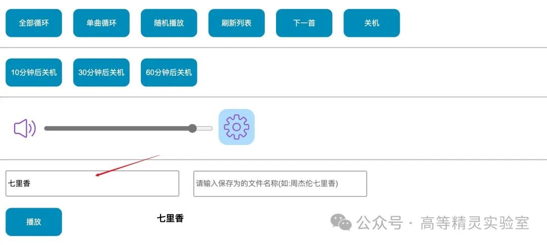 以上即完成了全部设置,现在直接在输入框中输入歌名,点击播放试试吧,不出意外的话,你的音箱已经开始播放音乐了!