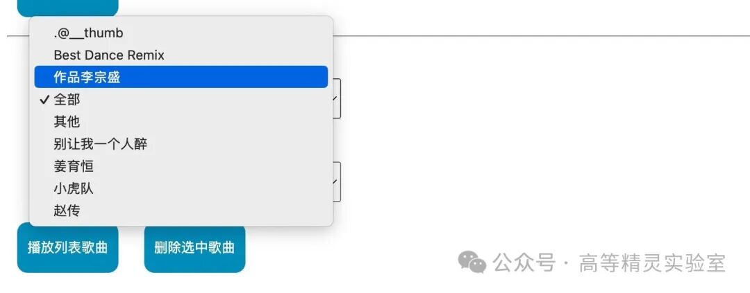 当然,你也可以在下面的播放列表中看到NAS中保存的音乐列表,目前支持mp3和flac两种格式,下载的话仅会下载mp3,是不是泰酷辣!
