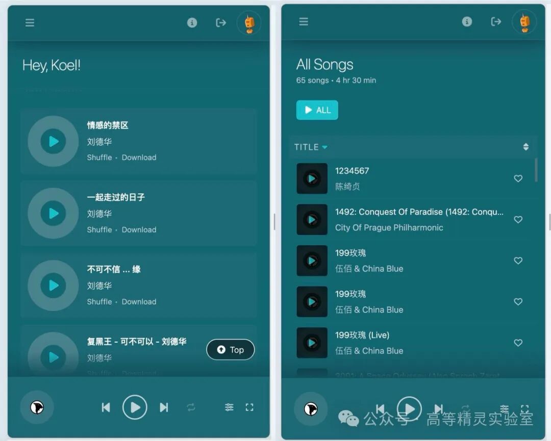 Koel也提供了官方的App供下载,名为Koel Player,支持iOS和Android平台,搭配NAS上部署的音乐媒体服务器使用,效果更佳!感兴趣的朋友可以直接在App Store搜索Koel Player或在笔者公众号私信【KP】即可快速获取下载链接。
