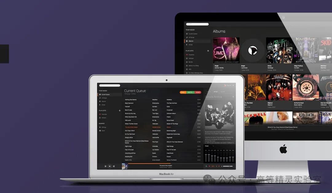 Koel不仅是一个音乐播放器,更是一个功能丰富的音乐管理系统,其主要特性包括: