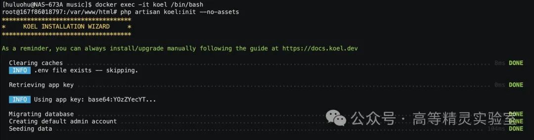 php artisan koel:init --no-assets