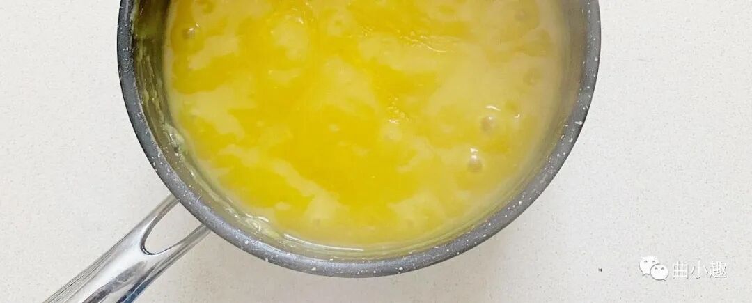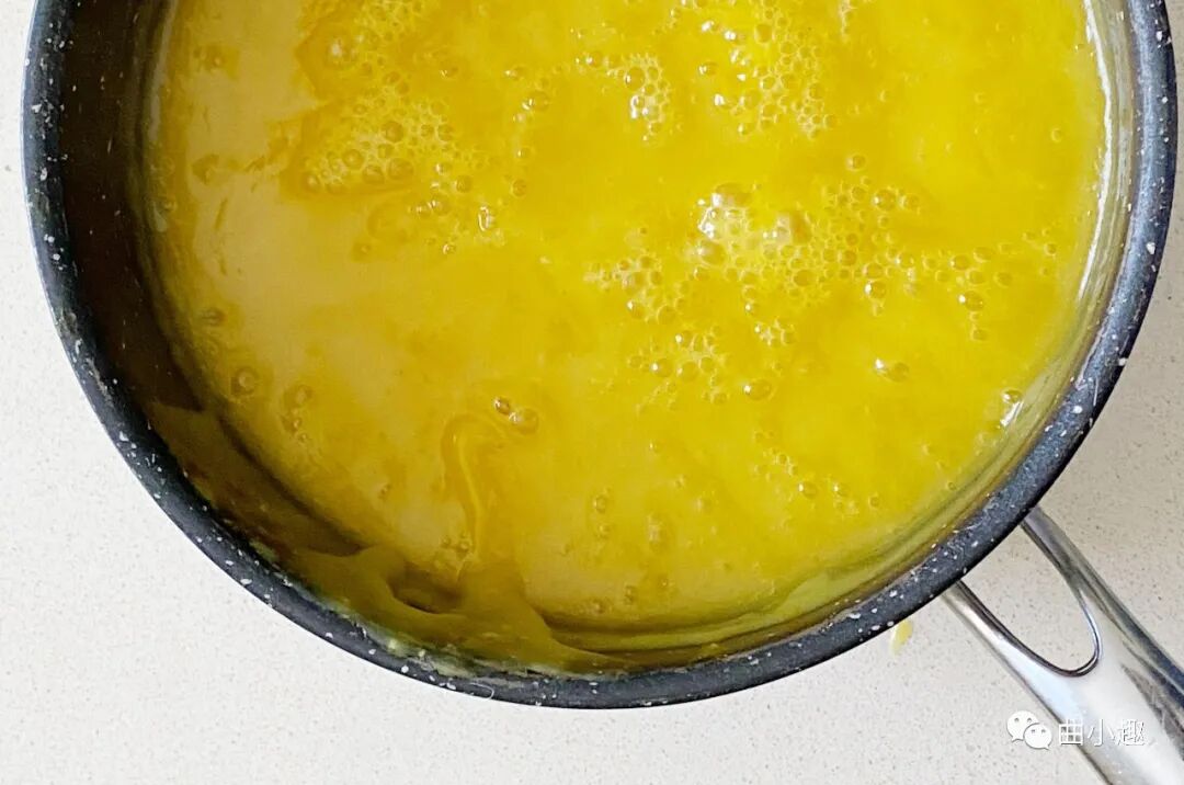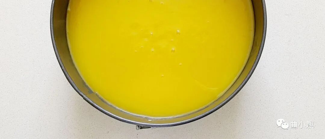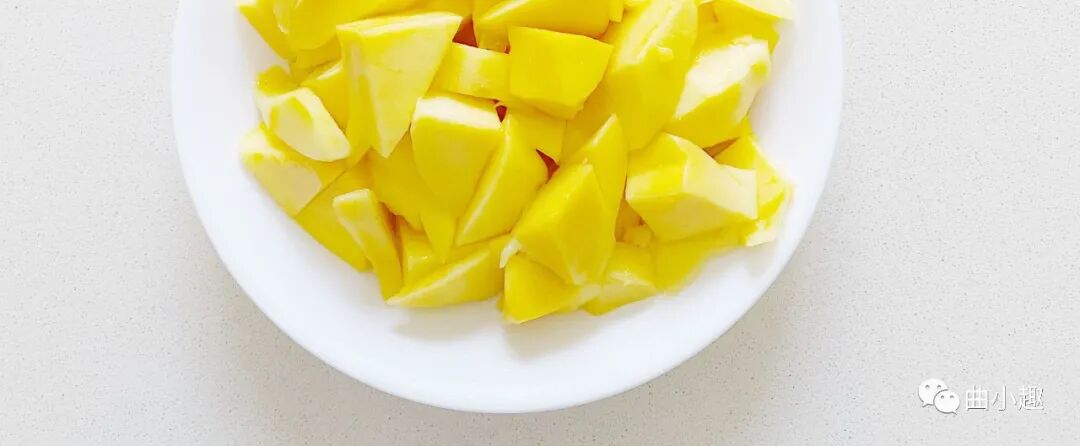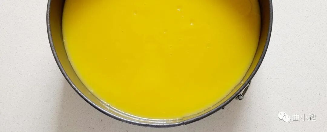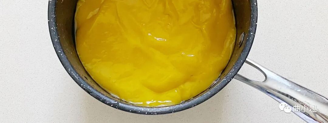 煮好的芒果糊,倒入已经冷藏好的底层上,继续放入冰箱冷藏两小时以上。