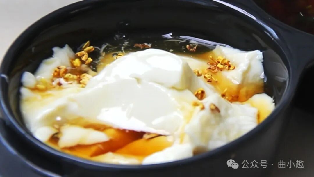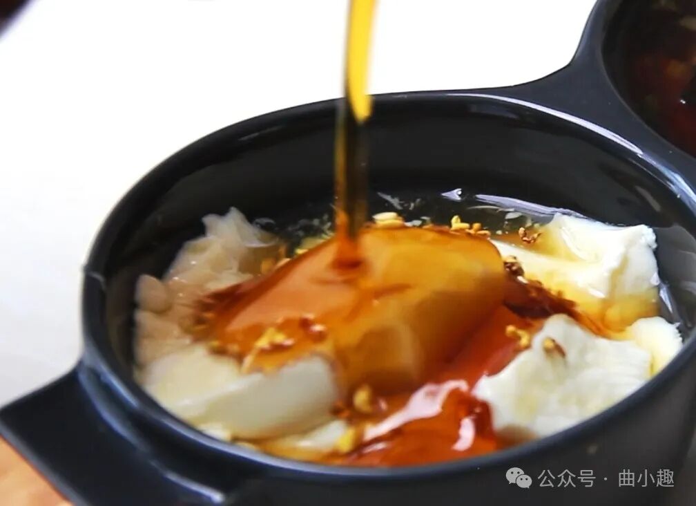 豆腐脑盛入碗中,加入枫糖浆|Spoon tofu pudding into a bowl and add maple syrup