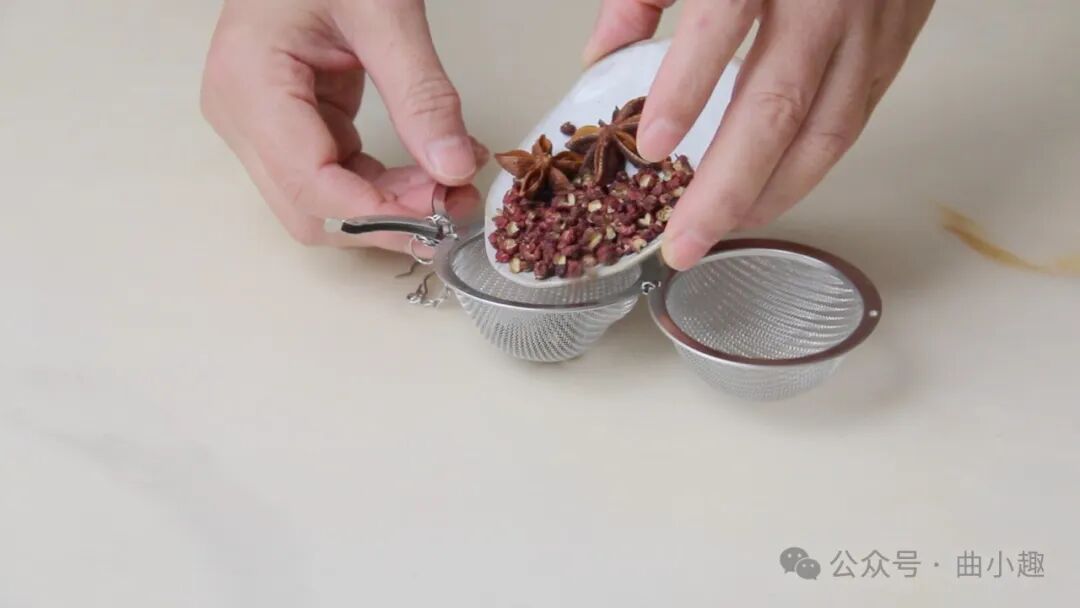 八角和花椒装入调味盒|Place star anise and Sichuan peppercorns in a spice box