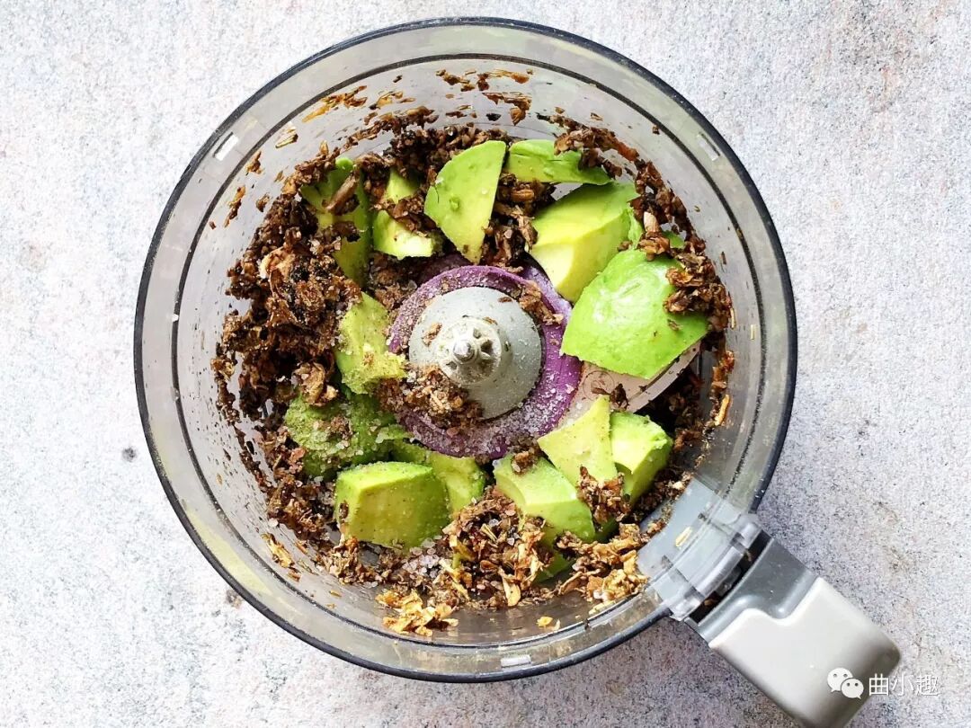 口蘑、香菇、野山菌、鸡腿菇等等,手里有啥用啥,烤箱210度烤十分钟(或者用少油炒香),加生姜、百里香或迷迭香(鲜的更好,没有鲜的就用干的香料)打碎之后,再加入牛油果、盐、胡椒、松子打成泥。