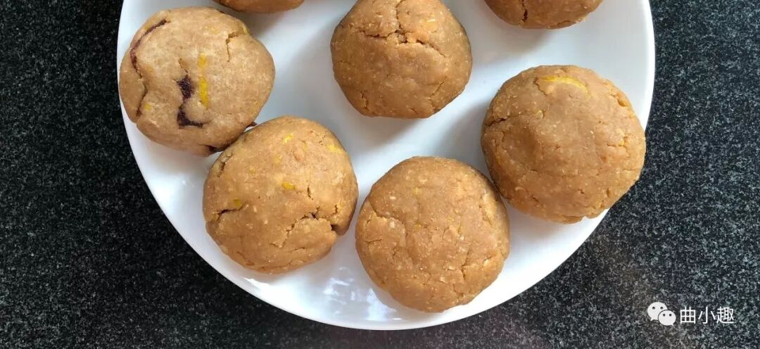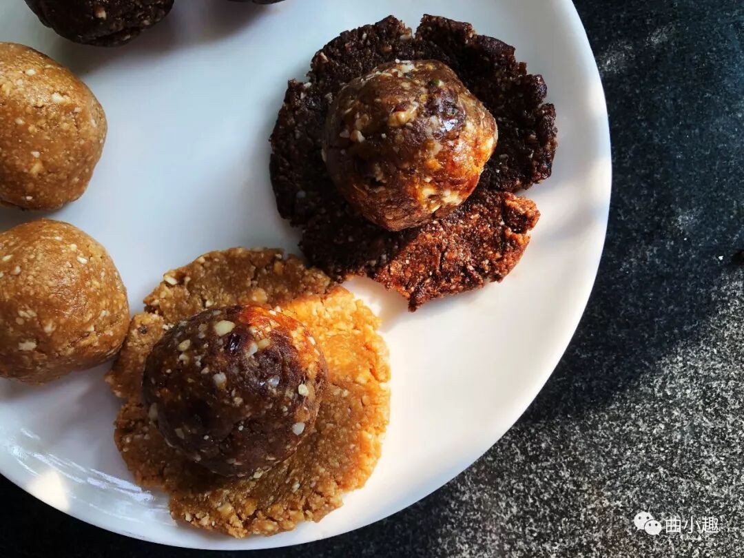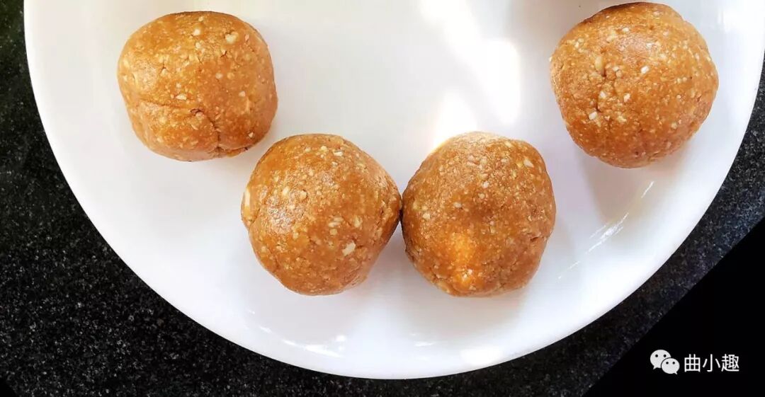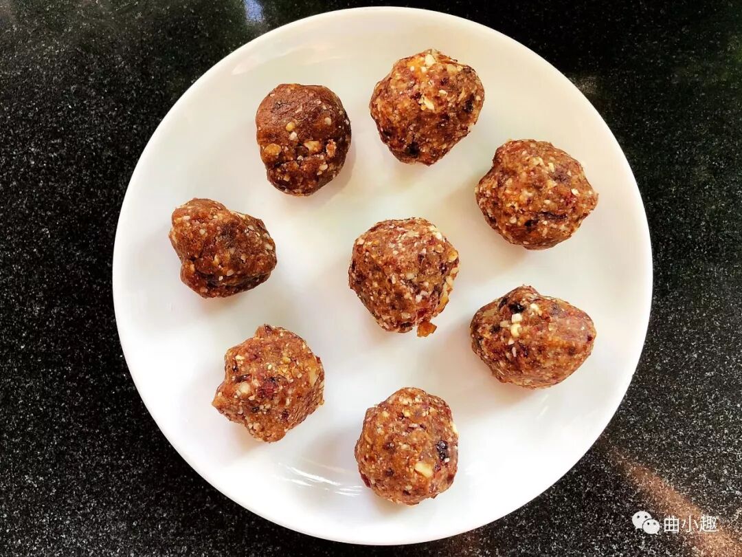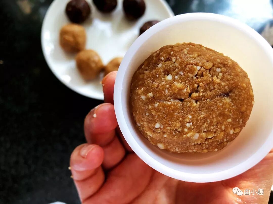 2,腰果粉加椰枣浆(增加粘性)、水,和成团。分成8份。