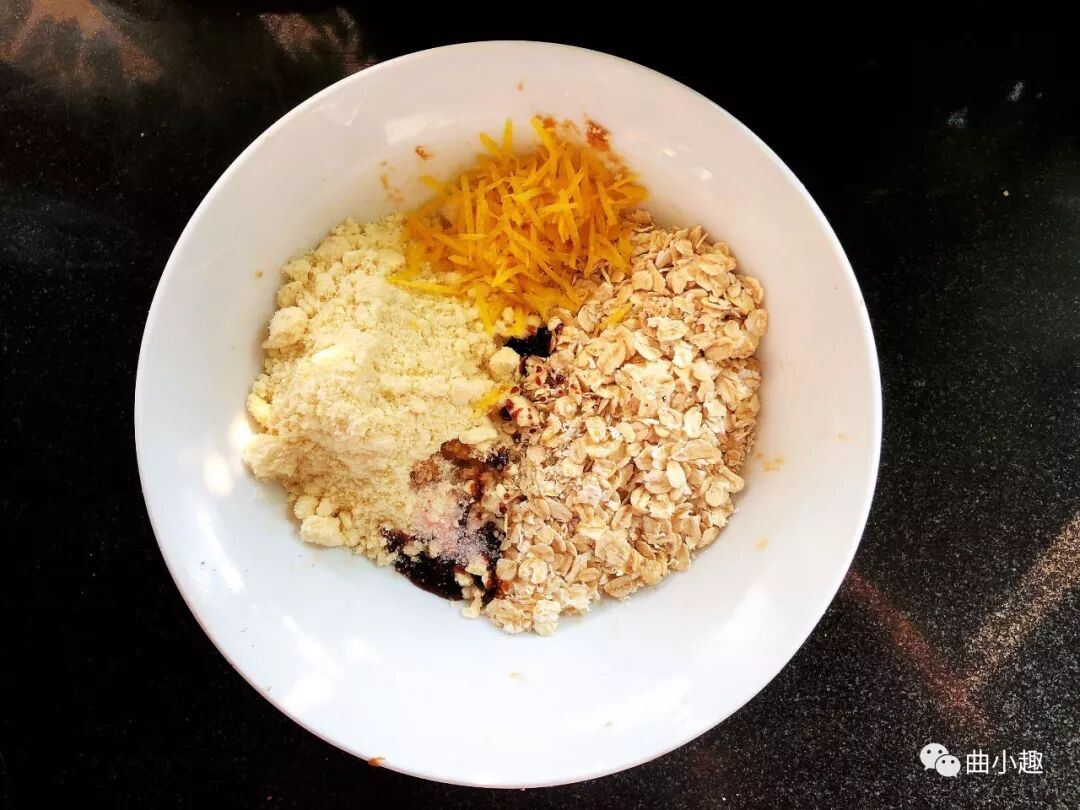 准备饼皮食材:即食燕麦片60克、生杏仁80克、奇亚籽粉30克(可不用)、柠檬皮碎适量、椰枣或椰枣浆10克、香草精华适量、水适量