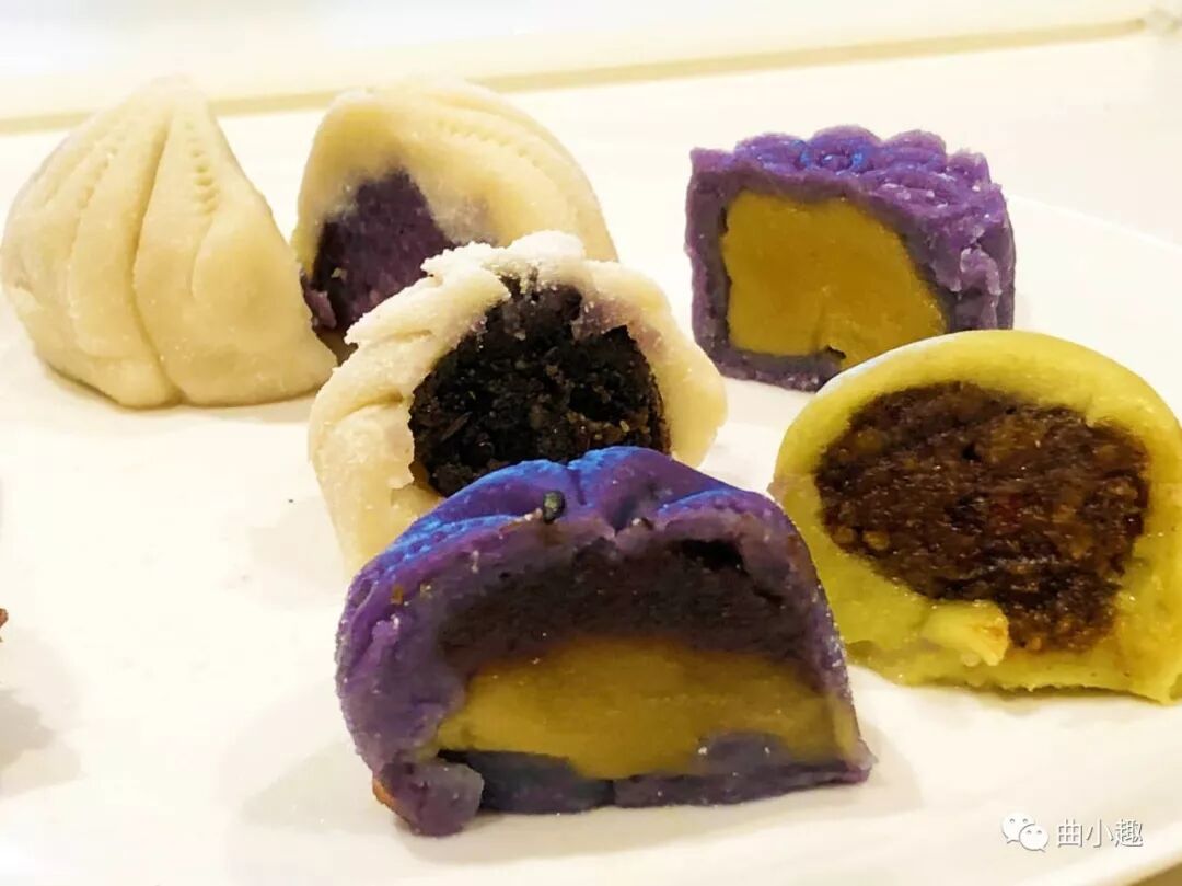 这次的馅料有三种口味:甜口(豆沙枣泥馅)、香口(五仁馅)、原味(栗子南瓜馅、紫薯馅)