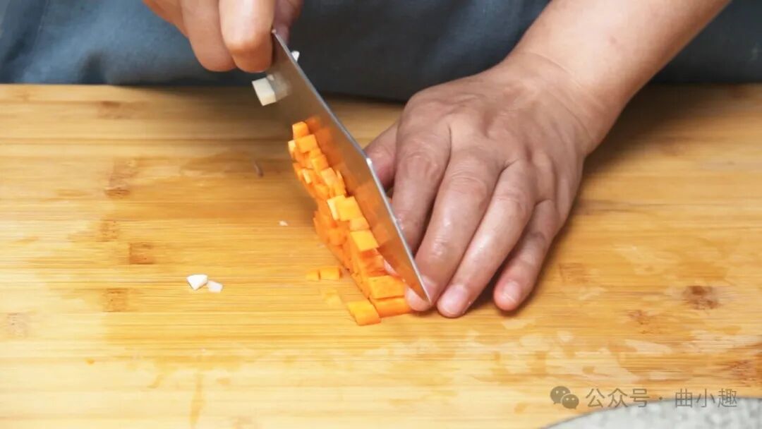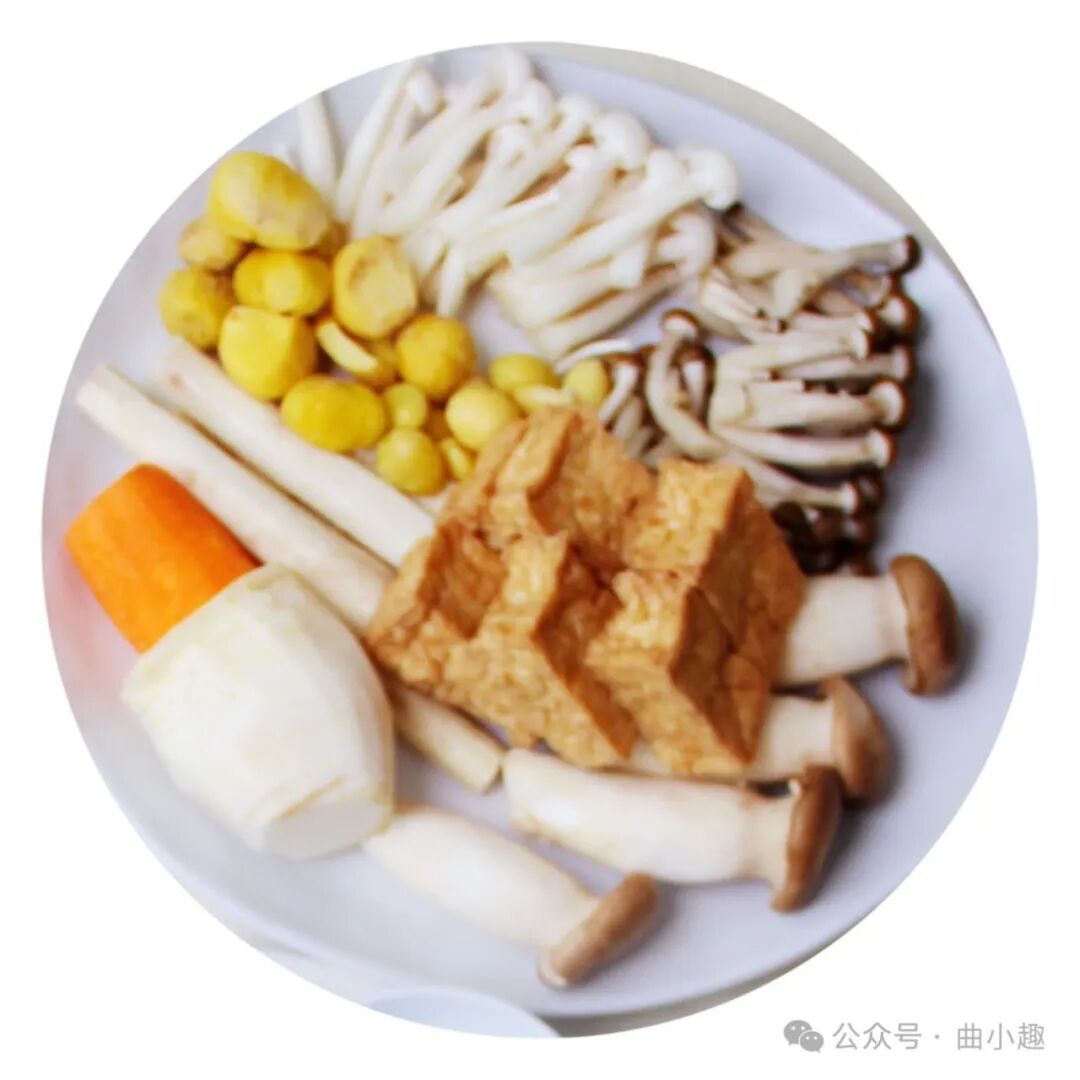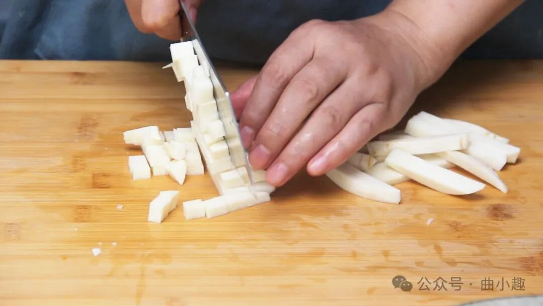 炸豆干、芋头、山药、胡萝卜和菌菇切丁|Dice the fried tofu skin, taro, Chinese yam, carrots, and assorted mushrooms
