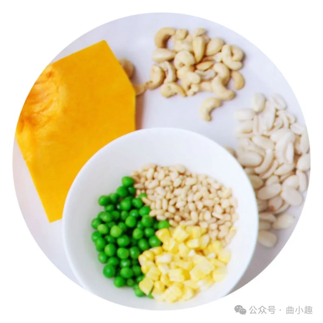 本食谱使用冷冻熟玉米、豌豆、板栗和白果。如果使用新鲜食材,请提前焯水