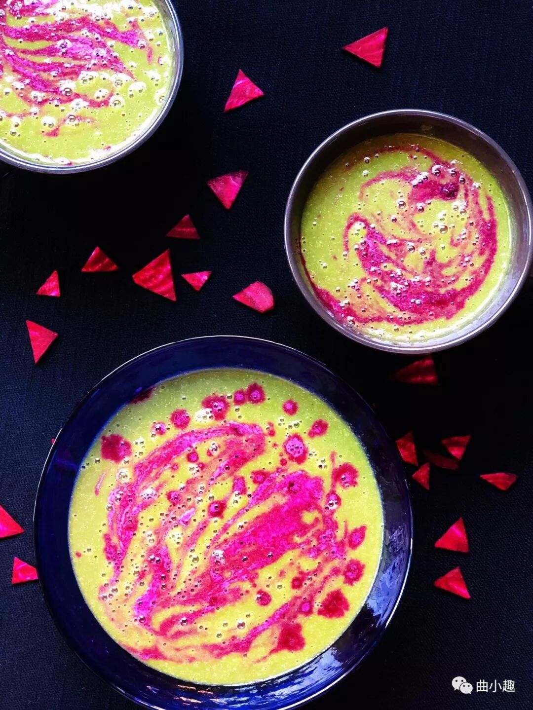 1,所有食材放入破壁机,加入食材整个高度的60%或更少的水,高速半分钟左右打匀,倒入盘中。