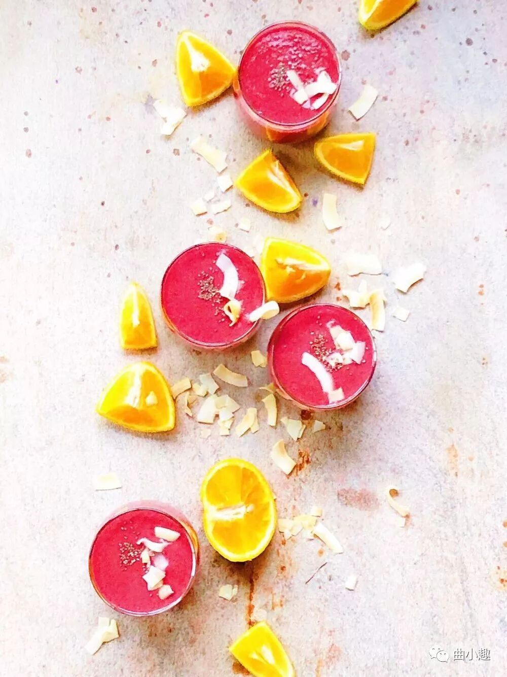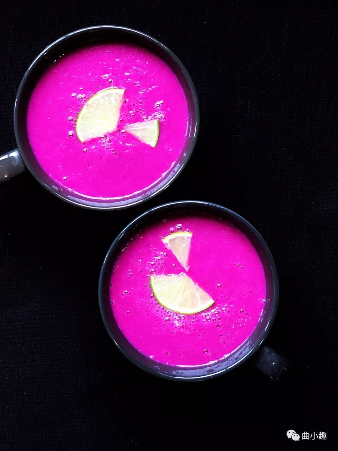 紫甘蓝、甜菜根、胡萝卜、苹果、香蕉、火龙果、亚麻籽、水、
