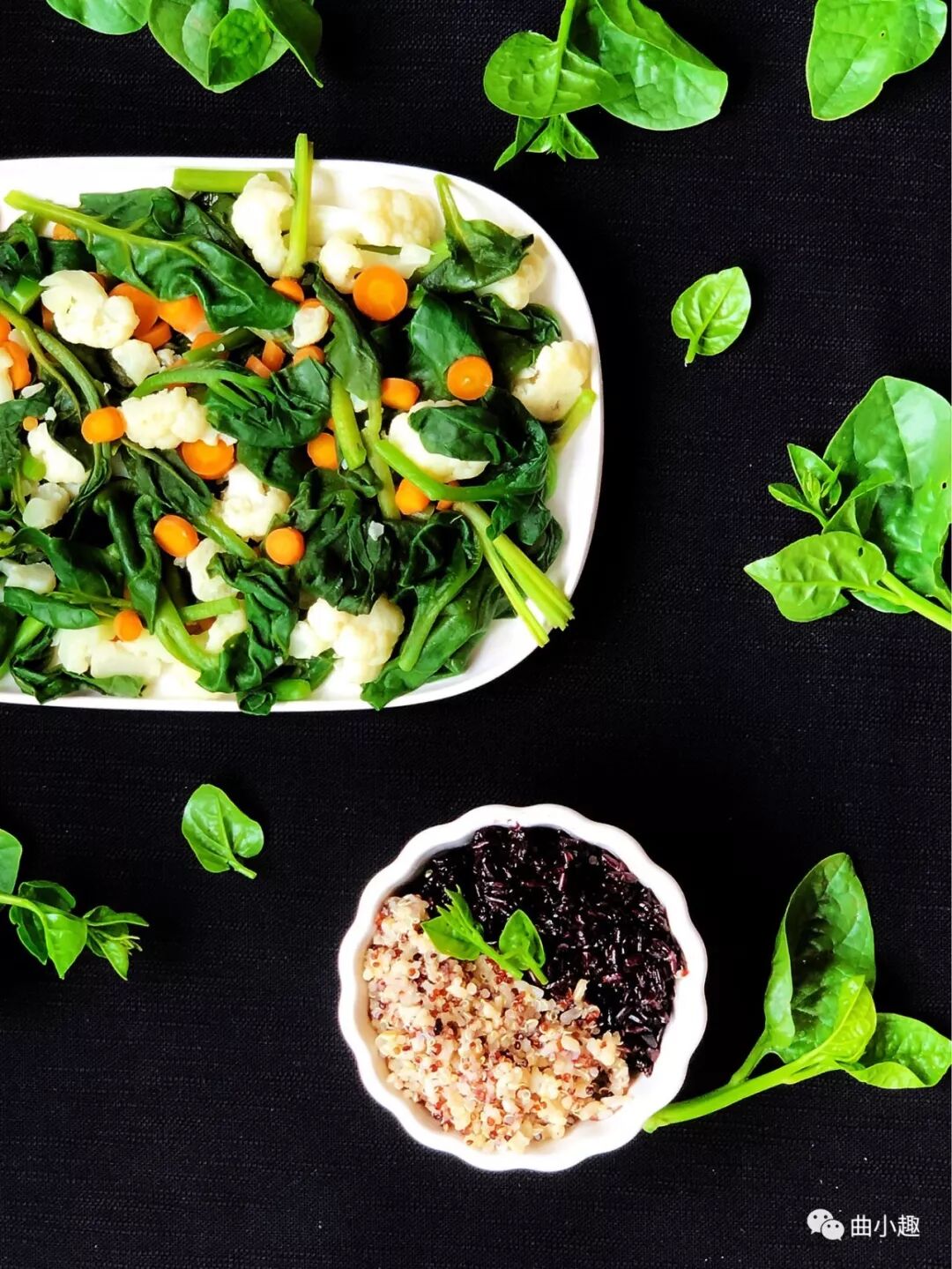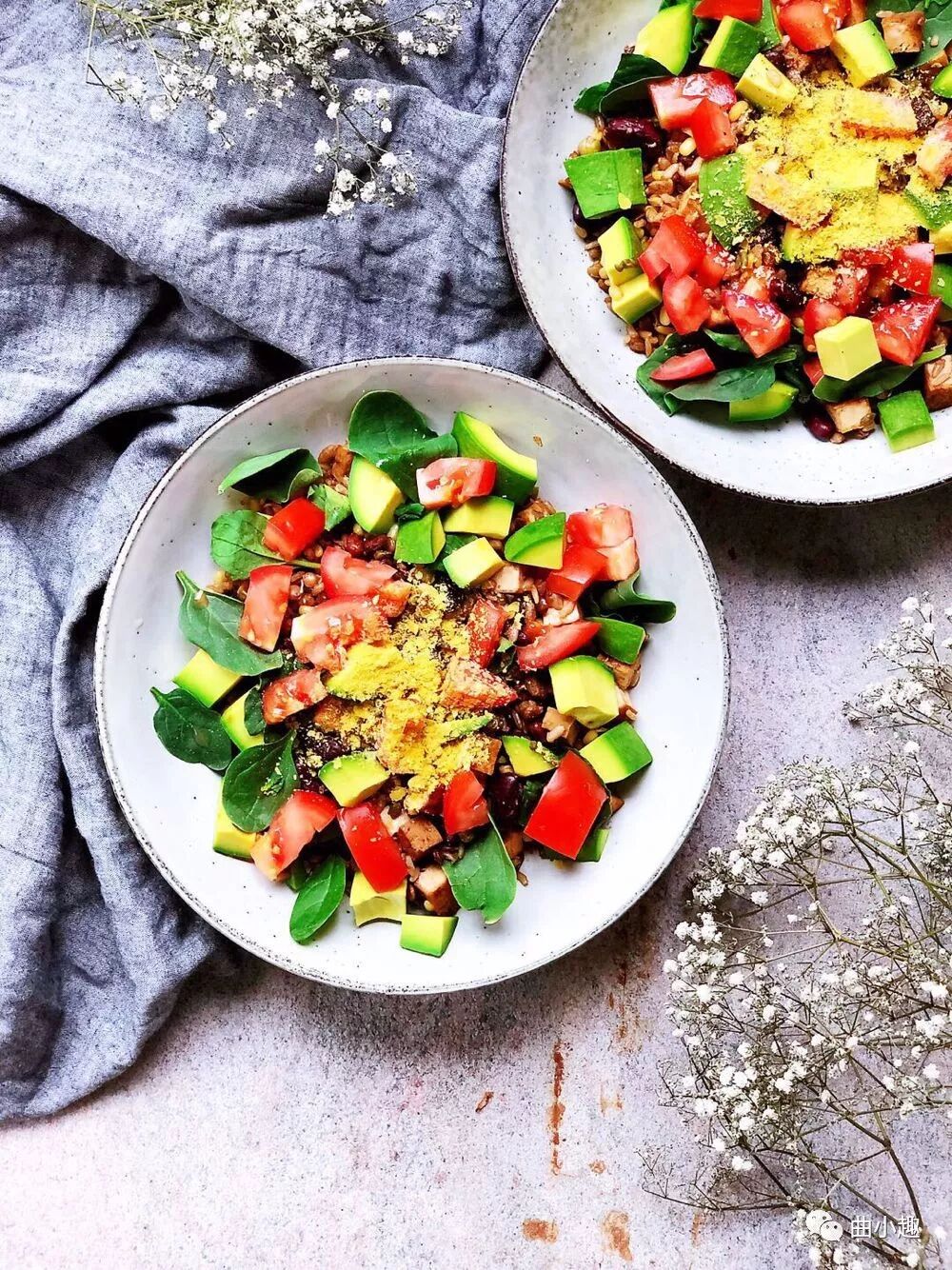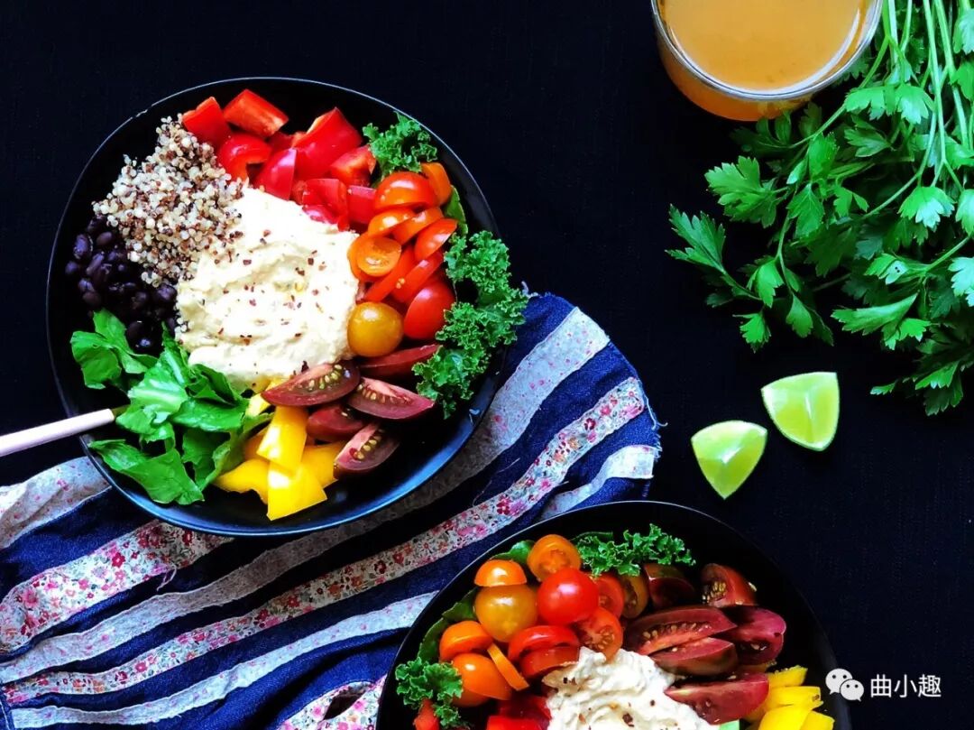 食材:小番茄、黑番茄、甜椒、长生菜、羽衣甘蓝、小菠菜、荞麦、黑豆、藜麦、鹰嘴豆、青辣椒、青柠檬、黑胡椒、盐、亚麻籽粉