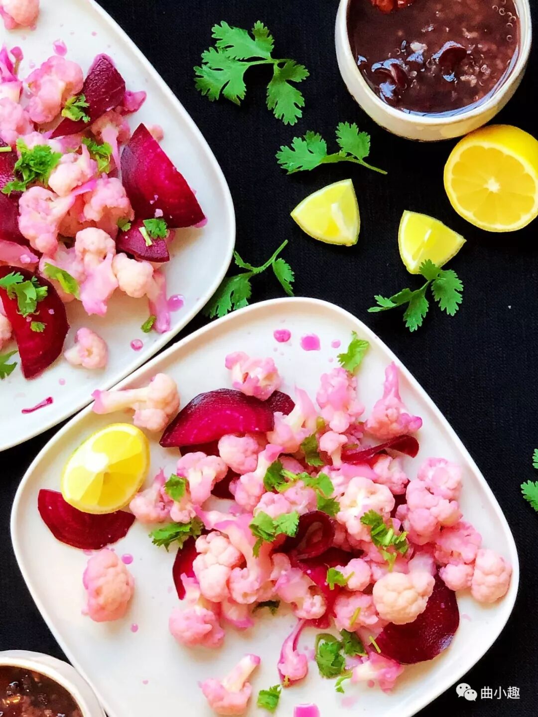 紫甘蓝味道比较重,加柠檬可以减弱它的味道,椰枣可调和柠檬酸味。