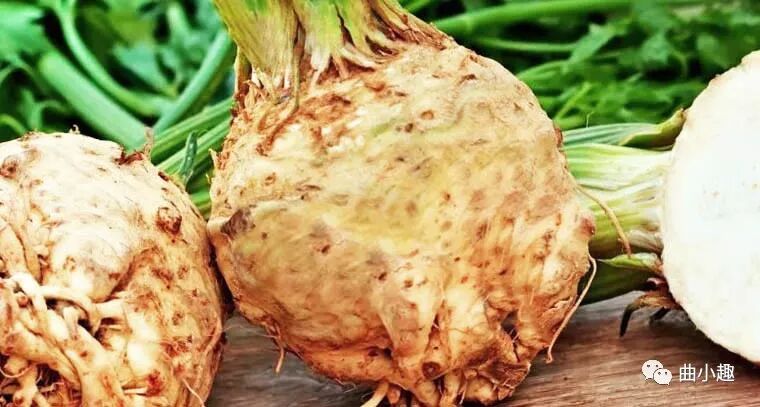 根芹想必大家都看到过,但因为它粗糙的外表,基本上都被人忽略掉。根芹就是根用的芹菜,与叶芹菜相比,它具有较淡的芹菜香味,但粗纤维含量远低于叶芹菜,尤适老年人食用,营养价值也较叶芹菜高,每100g食用部分含蛋白质1.5g、脂肪0.3g、糖类3.5g、维生素B1 0.05mg、维生素B2 0.06mg、维生素C8mg、钙43mg、磷115mg、铁0.7mg。根芹可以凉拌、炒菜、榨汁。今天我们用来做泥。