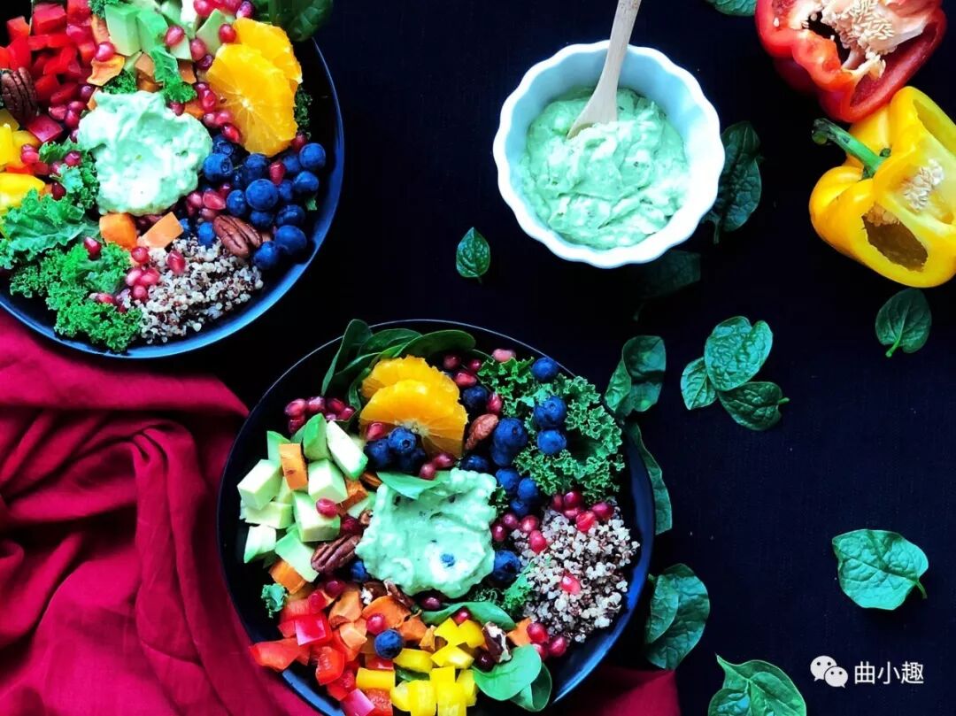 黑糙米、荞麦、黄瓜、牛油果、甜椒、无花果