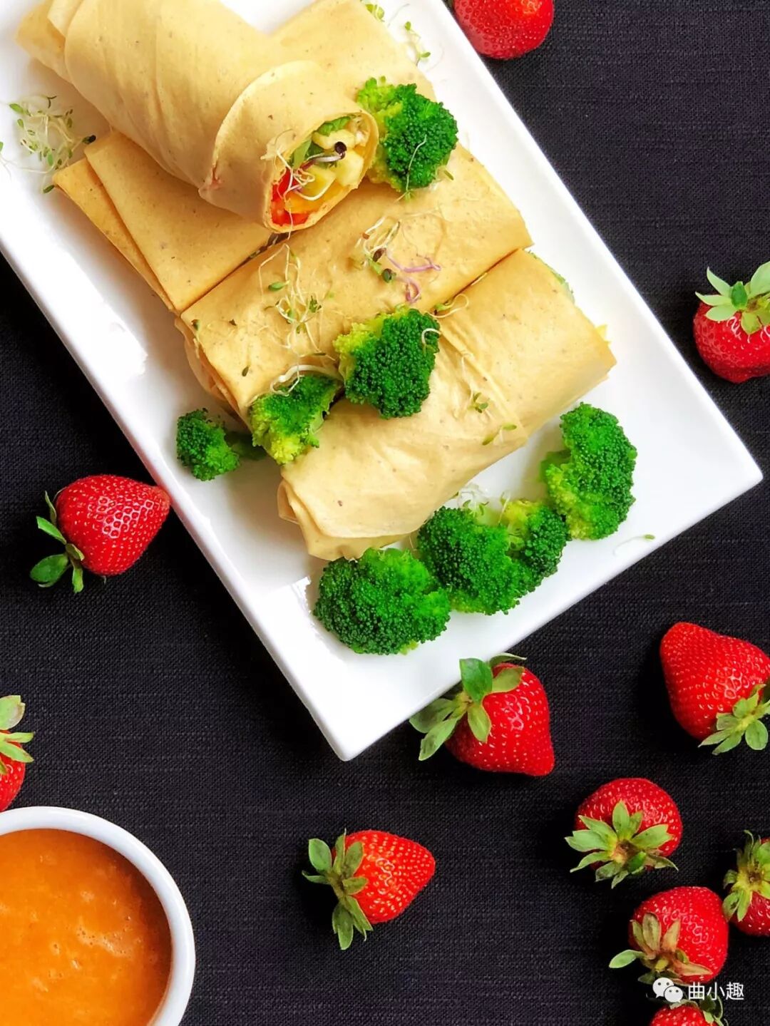 全麦杂粮煎饼、苹果条、甜椒条、长生菜、香蕉条
