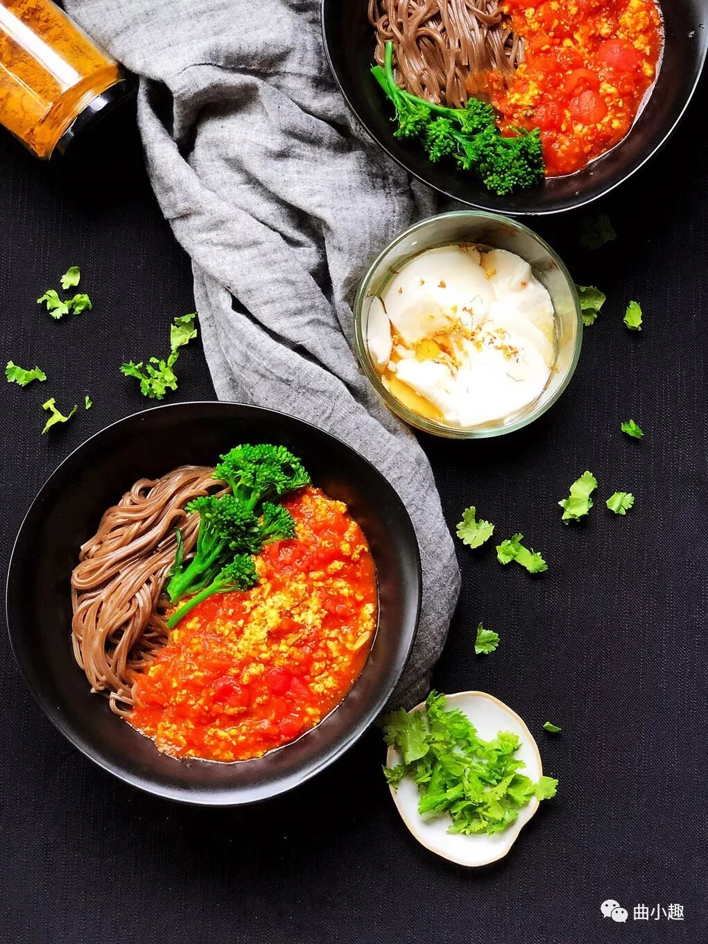 姜片、番茄、西兰花、香菜、荞麦面、姜黄粉、盐、自制苹果醋豆花