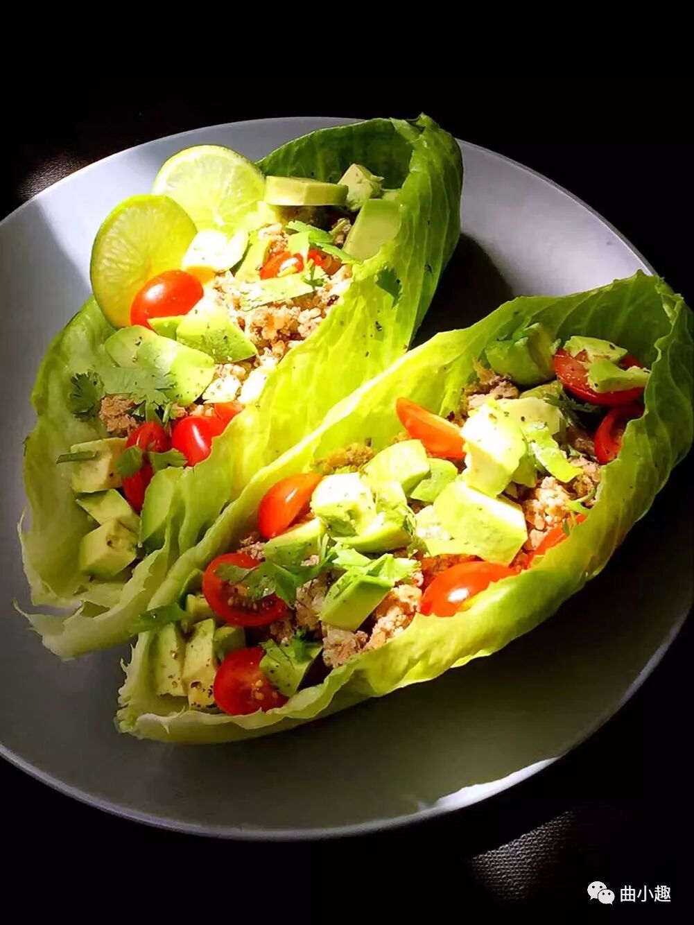 生菜、小番茄、牛油果、核桃、杏仁、荞麦(泡水过夜)、柠檬、黑胡椒、盐、香菜