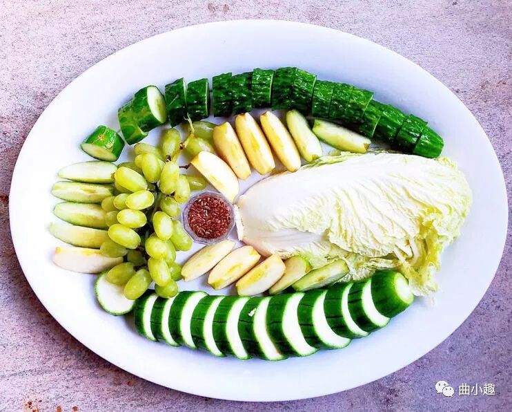 青瓜、丝瓜、白菜、苹果、青葡萄、亚麻籽