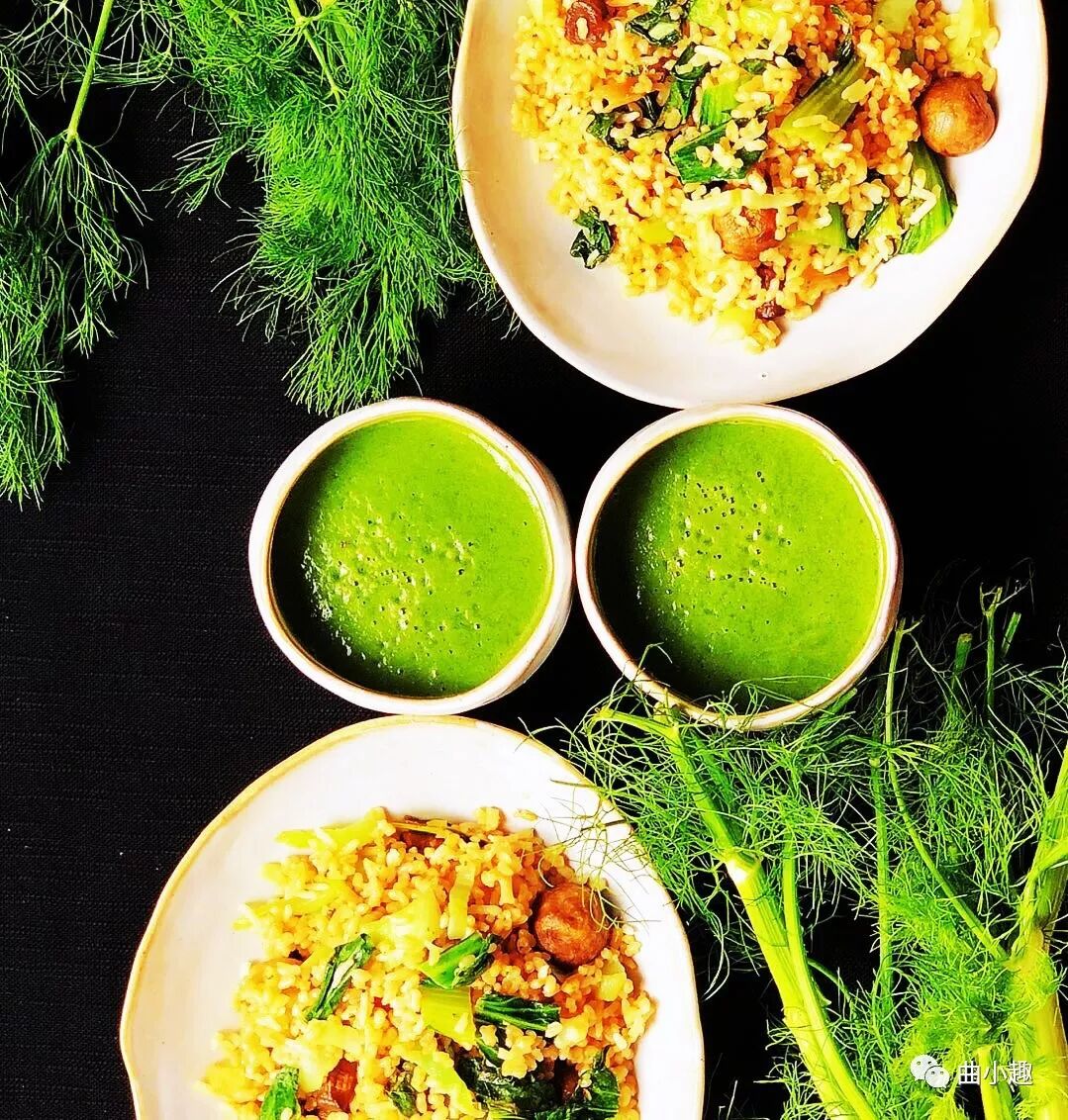 蔬果昔:羽衣甘蓝、茴香根、青苹果、香蕉、柠檬、亚麻籽、水