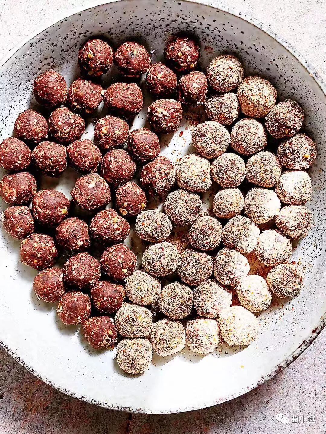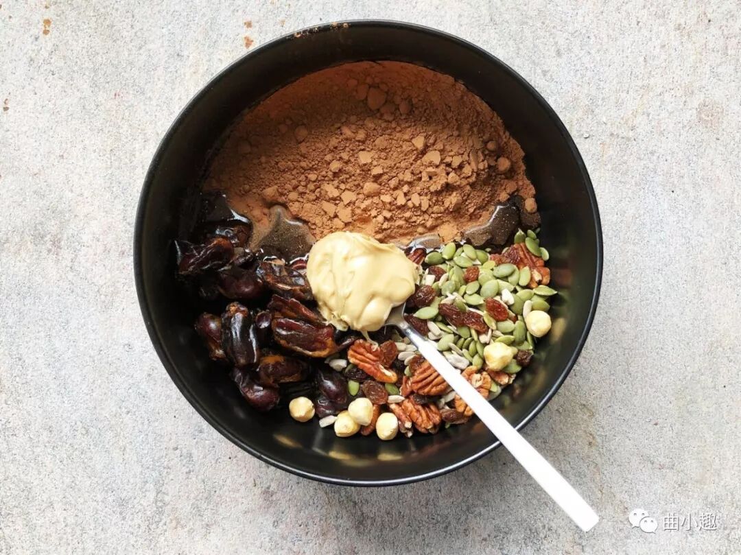 2,每日坚果食用量一般一小把不超过30克,所以这个可可能量球可以够一个孩子吃一周左右,不要贪多。