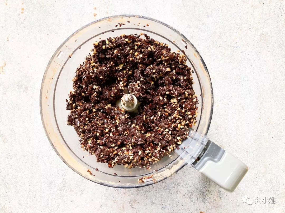 2,用料理机把放进的食材打碎,能捏在一起即可。