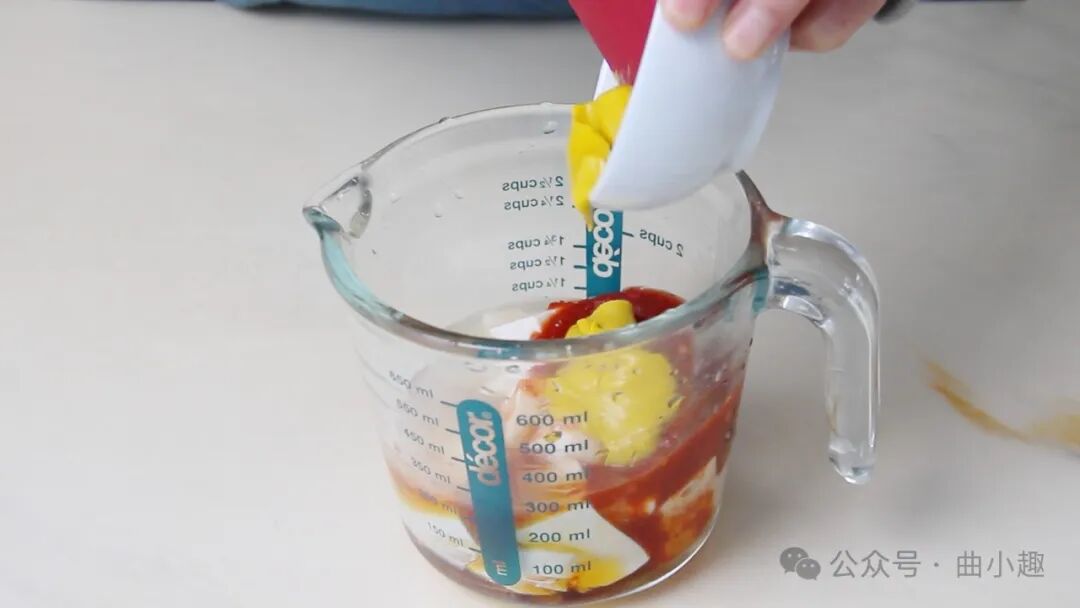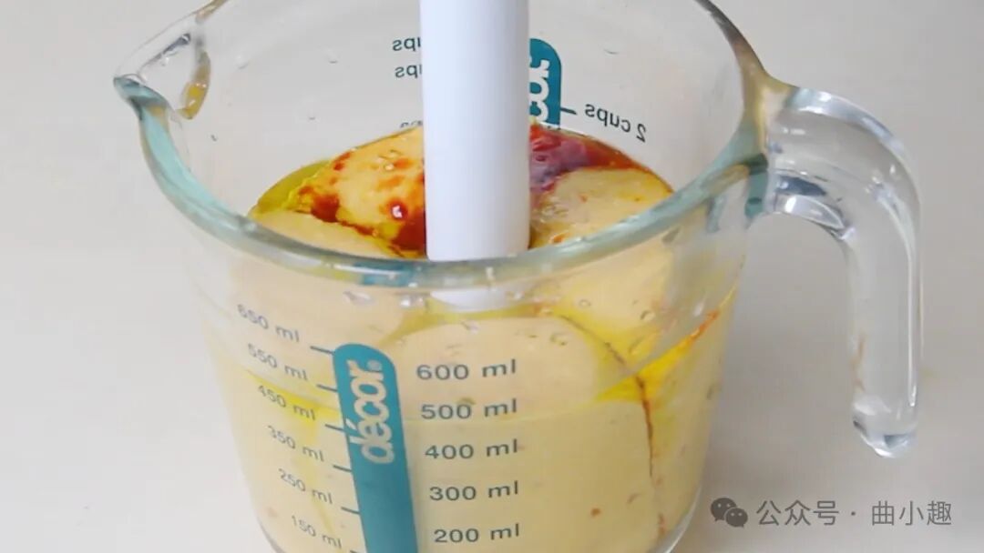 把所有純素是拉差醬食材放入一個容器,用手持攪拌器低速攪拌至濃稠備用 Blend all vegan sriracha mayo ingredients in a container with a hand blender on low speed until thick, set aside