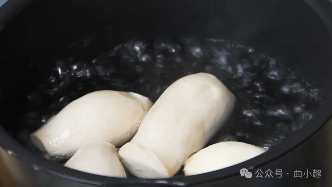 鍋中加水煮沸,加1茶匙鹽,將蘑菇焯水5-8分鐘,過涼水后撈出控幹| Boil water in a pot, add 1 tsp salt, blanch mushrooms for 5-8 minutes, then cool in cold water and drain