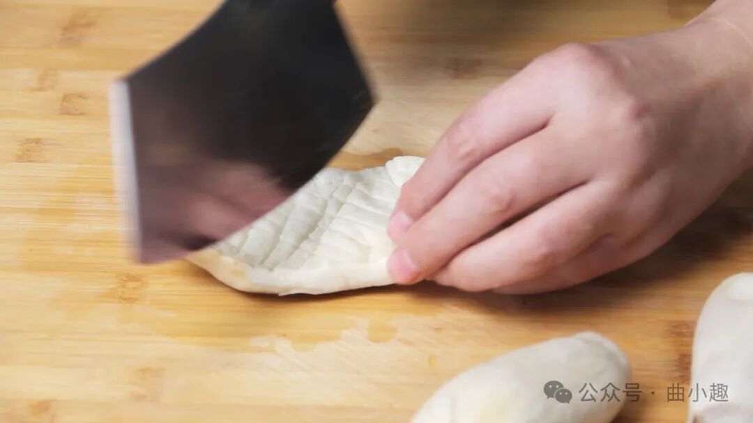 用刀在蘑菇上縱向切開一個口,然後以螺旋方式片成一整片| Make a vertical cut with a sharp knife, then slice in a spiral pattern to create a whole piece