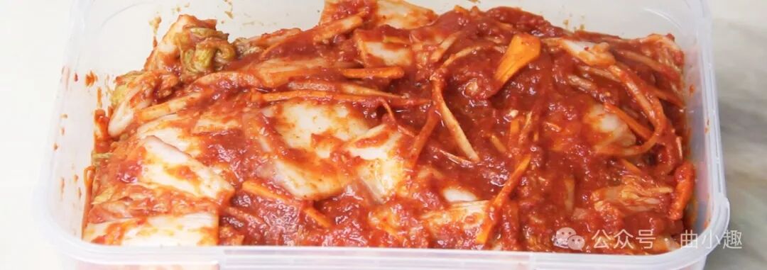 将白菜与泡菜酱料混合,放入密封容器中,尽量避免玻璃罐,发酵产生的气体容易使容器裂开,如果买不到泡菜专用容器,密封保鲜盒是不错的选择