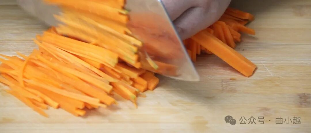 胡萝卜切丝,辣椒切段,姜切碎或磨成泥