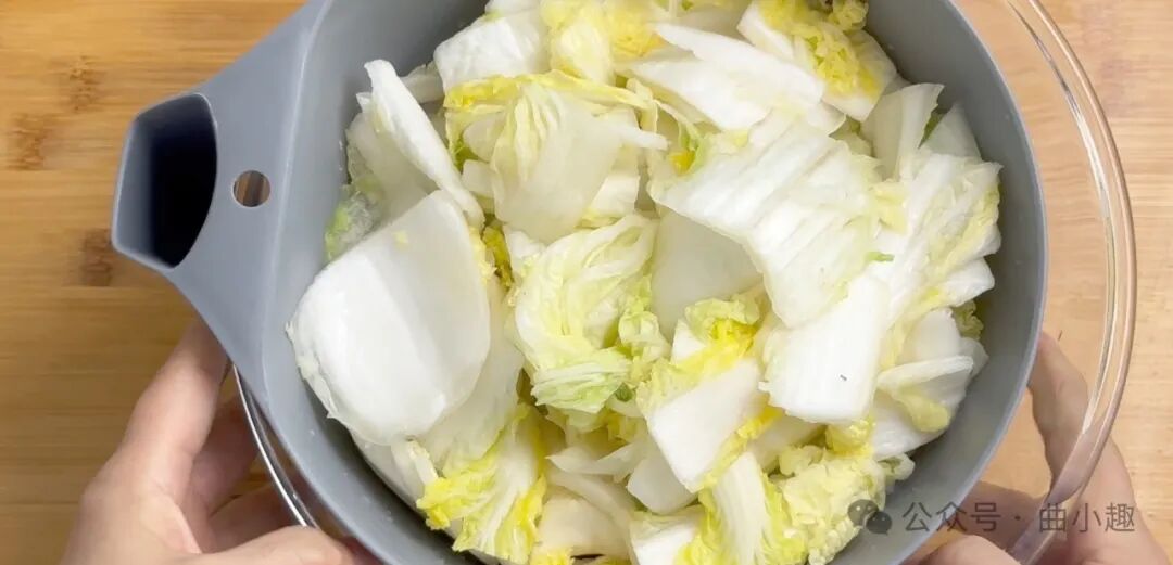 将白菜切段,用盐腌制2小时,用水冲洗三次,最后再用纯净水洗净沥干,采用蔬菜甩干机,可以节约时间