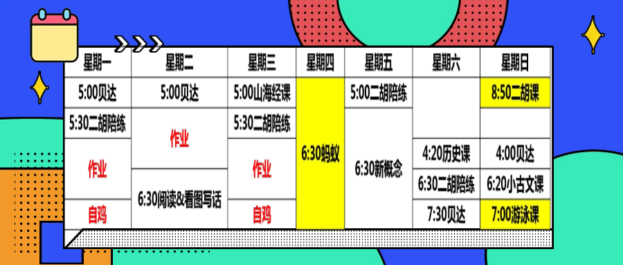 嘿!一共也才4小时嘛!上午做完作业,下午就能出去户外了。娃在家很轻松嘛!