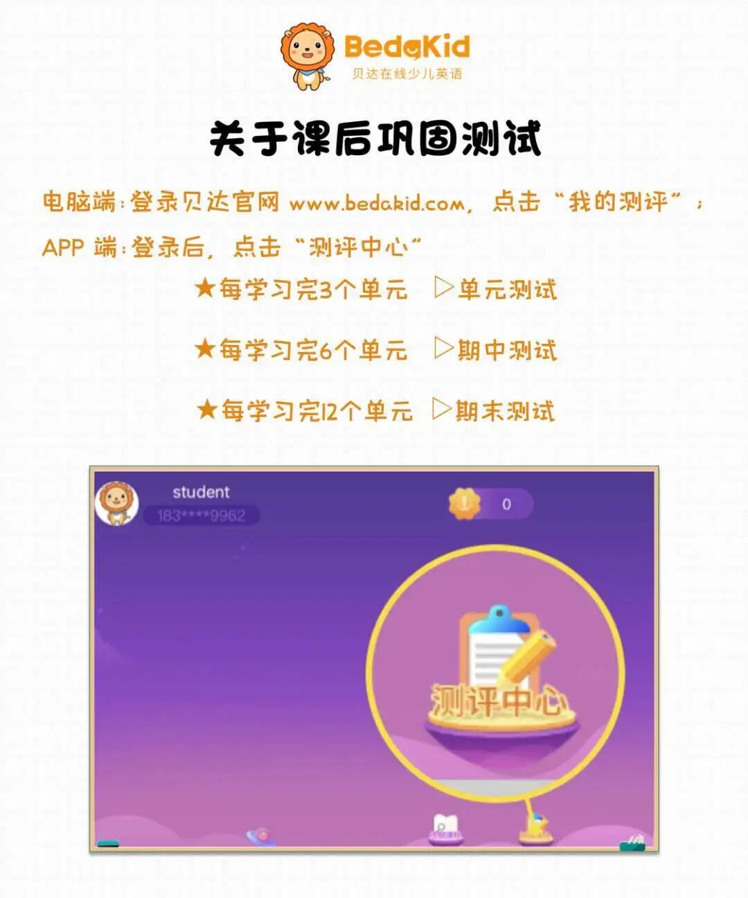 每次课后还有配套的练习册可以复习,每三个单元还可以进行一次单元测试,期中和期末还各有一次,让我们及时了解到学员的学习效果。