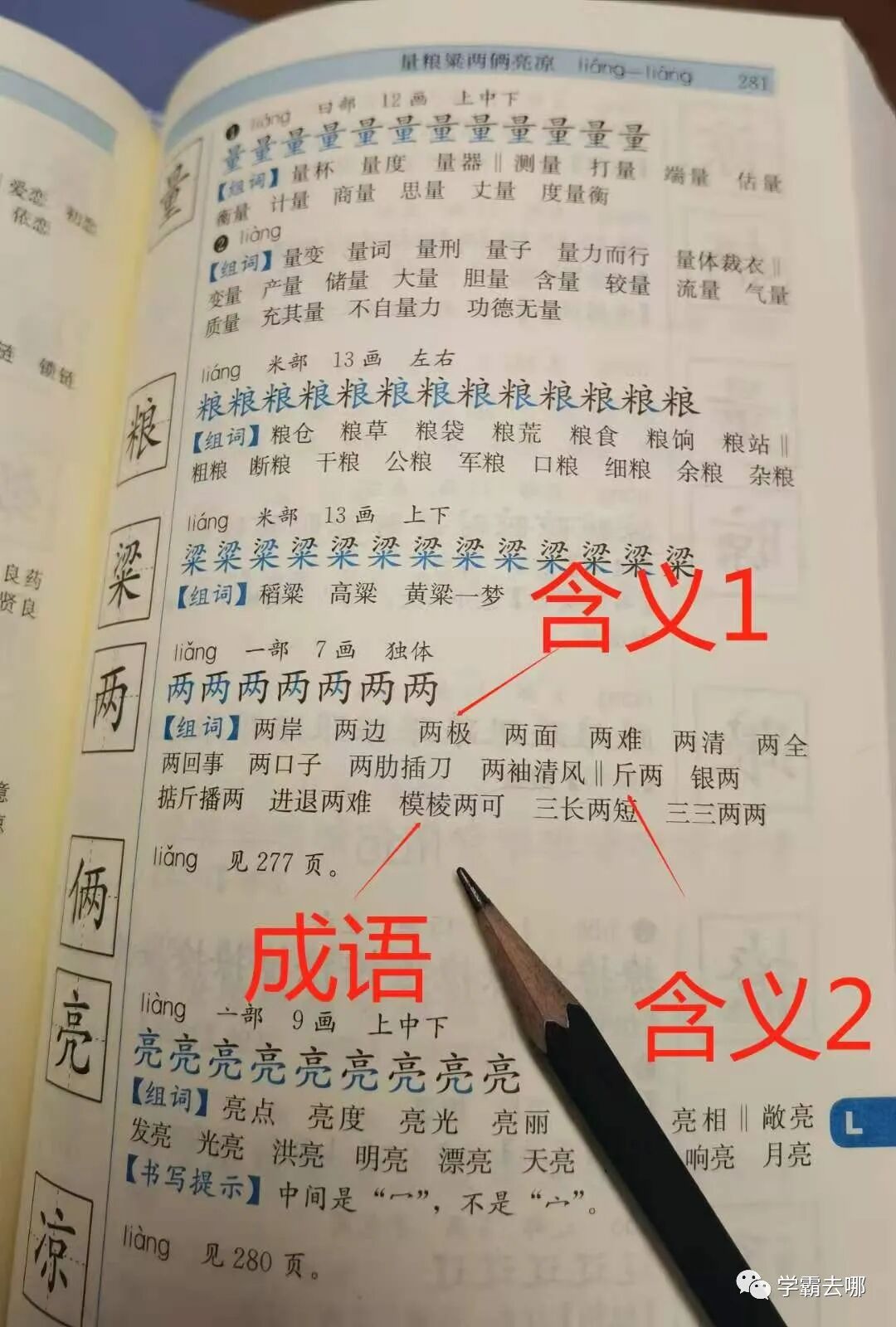 这里可以借助字典,让小朋友先说出两个组词,再查一查字典,看看该字有哪几个意思,自己是不是都想到了,字典里的组词都念一念,不理解的请家长简单解释意思,然后挑两个词写下来。