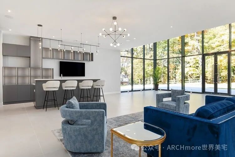 这栋弗吉尼亚州富裕的华盛顿特区郊区奥克顿的一栋现代新建住宅,内部和外部都具有干净、引人注目的设计著称。占地 15,000 平方英尺,2022 年完工,将当代欧洲建筑与超豪华饰面融为一体。外部建筑在设计时考虑到了对称性,利用涂料、石材,同时利用雪松材料带来温暖的感觉,与现代魅力相得益彰。