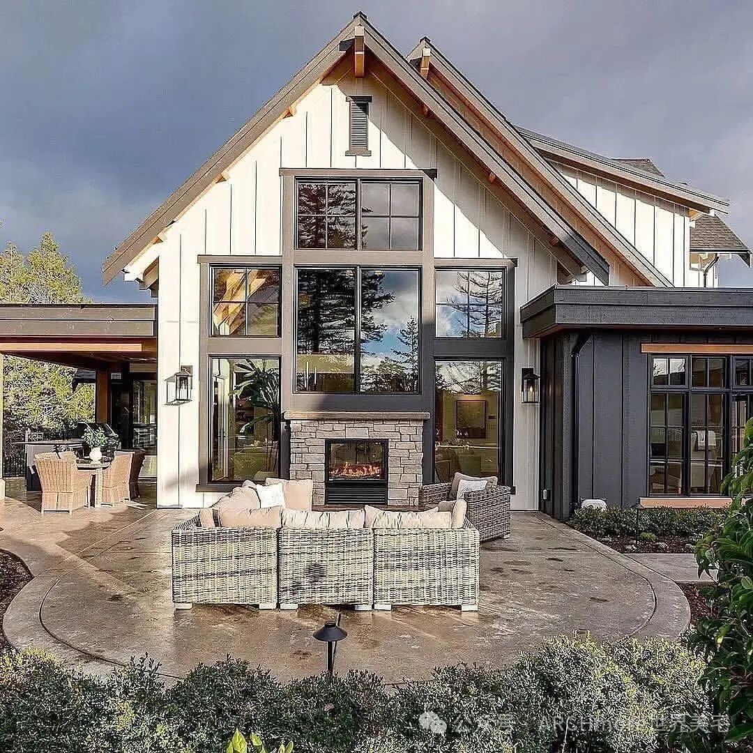 这个现代乡村风格的住宅造型优美,大坡度的屋顶提高了南侧主要居室的高度,又利于排水,真是既实用又美观。