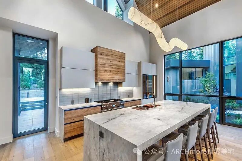 在这间6间卧室,6.5间浴室的家中,超大号雷纳斯欧洲窗户捕捉到风景。地板是地中海橡木,橱柜是斯卡沃里尼,台面是Decton和 Neolite。电器是Thermador和Miele。