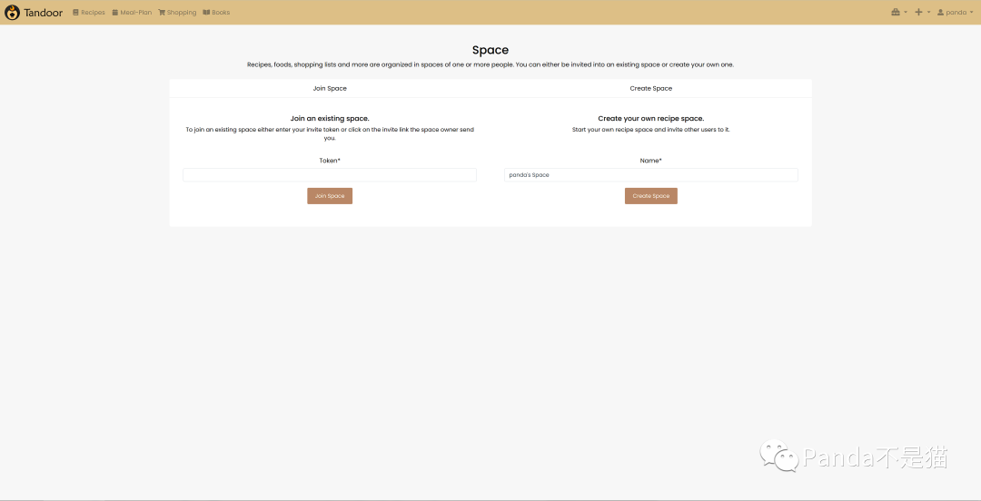 在登录后还会提醒让我们新建一个食谱空间,命名好之后新建便可,第一个选项为连接现有空间,这也就意味这你可以通过Token连接到别人的食谱空间。