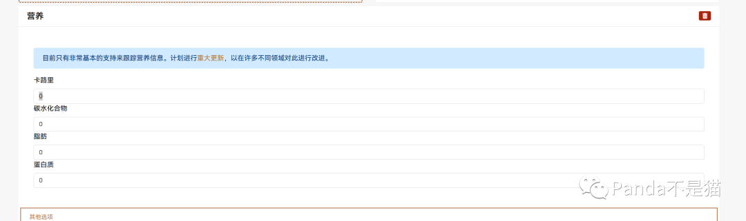 在营养界面可以设置这道菜的卡路里以及热量等等信息。