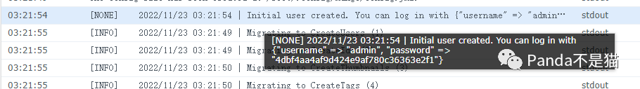 账号和密码需要到容器日志中找,第一次运行时会自动生成,在这个位置。
