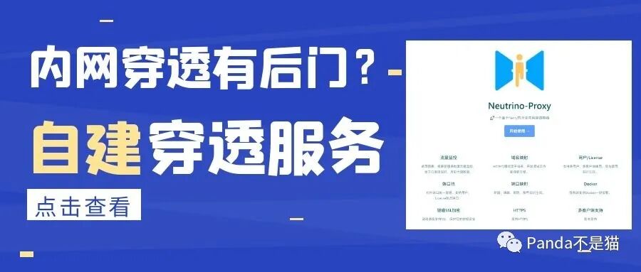 前两天有粉丝问我,我没有公网但是想在外面访问NAS上的各种服务,但是现在市面上的各种穿透免费的要么带宽有限,要么就是一些小团队做得担心有后门之类的。问我有没有办法自建穿透,那当然是有的啊,不过同时他又甩了一句话,有没有一键搭建的开源穿透服务呢?毕竟自建我发现有点难度。巧了,刚好前两天某项目的开发团队就在做这样的事情,于是乎便有了今天的文章。中微子代理——一个基于Netty的开源内网穿透神器,首先我们需要注意的是这是一个开源的程序,能将这样的项目开源我还是挺佩服开发团队。同时该项目支持的服务不止是穿透,具体功能如下: