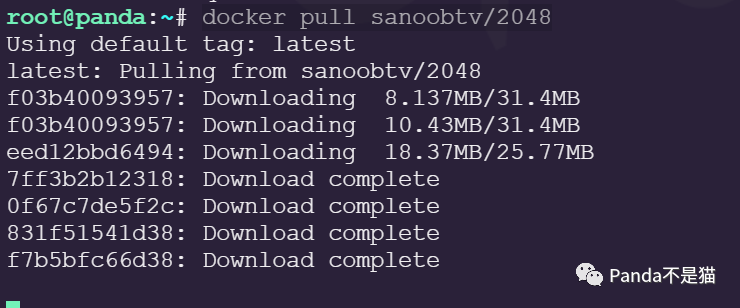 2048也是一款不错的益智游戏,刚出的时候便风靡一时。不过这一类游戏的热度都是有生命期的,所以现在其实很少能看到有人玩了,不过问题不大。部署也很简单,依然是命令行输入docker pull sanoobtv/2048,不知道为什么这个容器拉取异常的慢。