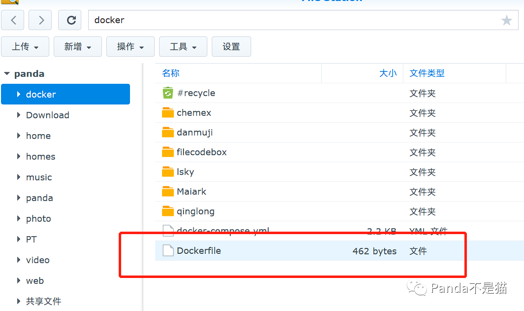 保存后我们直接重新命名为Dockerfile文件,记住这里要把文件的txt后缀名删除掉哦!随后放到docker文件夹中。