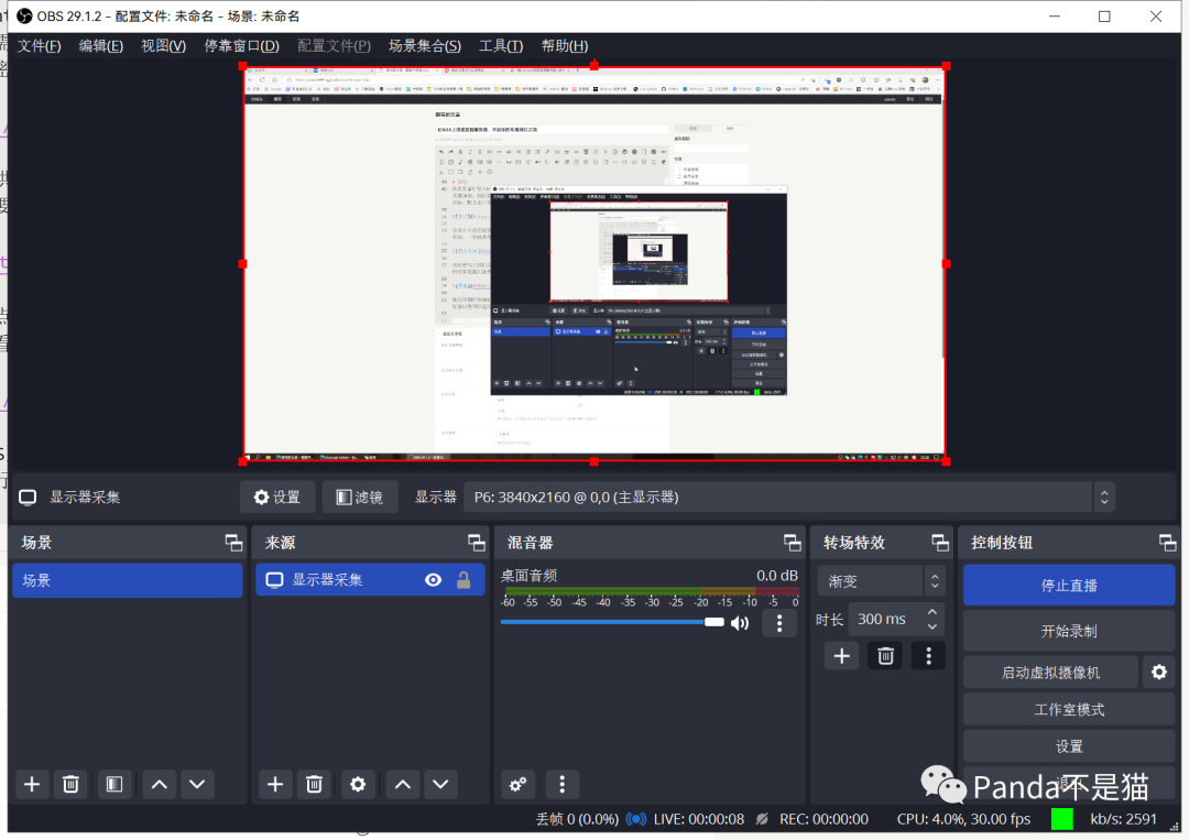 随后我们打开OBS直播推流软件,点开设置——推流界面,将我们的地址以及秘钥填进去。再捕获好窗口便可以进行开播了。