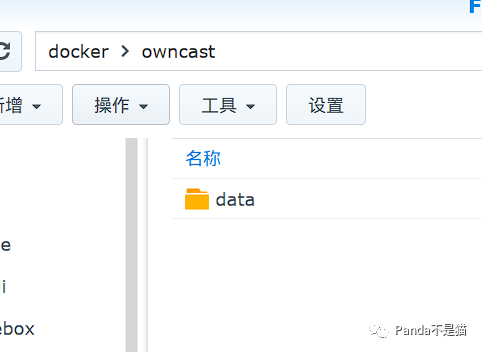 容器拉取之后为了数据本地持久化,我们还需要在docker文件夹中新建一个owncast文件夹,并在其中新建子文件夹data。