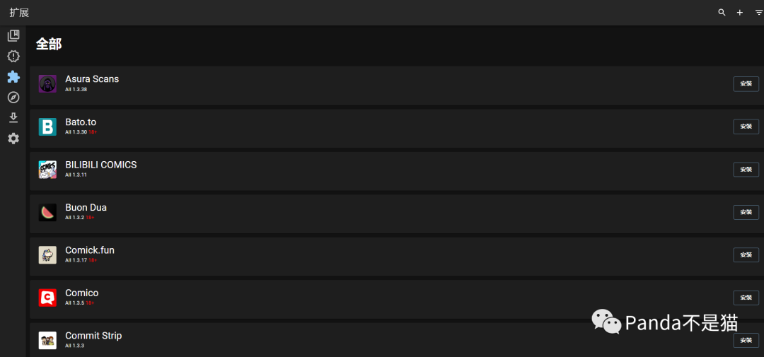 如果你有本地的漫画资源也可以直接导入进去,导入路径为 docker/Tachidesk/local ,需要注意的是,导入的漫画需要按照文件夹分类,图片顺序也需要按照文件名字排序才行。 那么如果没有本地资源,我们就可以用到扩展了。添加各种扩展已达到在线搜索,阅读以及下载漫画的功能。
