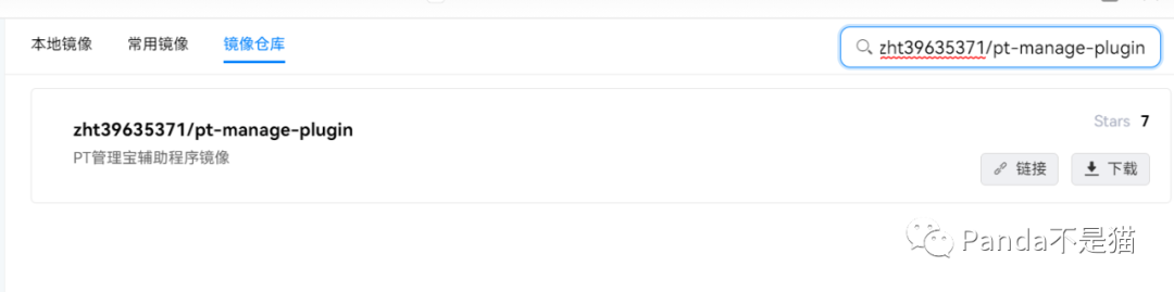 随后我们进到绿联的docker UI中拉取容器,直接搜索zht39635371/pt-manage-plugin,版本选择选latest就行。