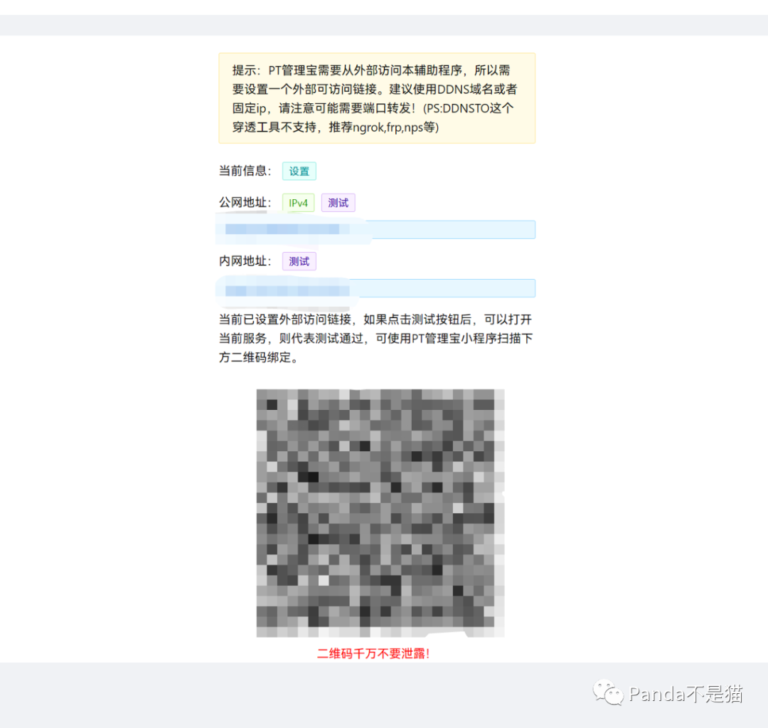 主界面也已经写好了步骤了,首先你需要配置外网访问,如果你有公网可以直接用公网IP或ddns后的域名,如果没有,你也可以用你的内穿穿透地址,这两种方法都可以实现访问,界面也会有对应的测试。